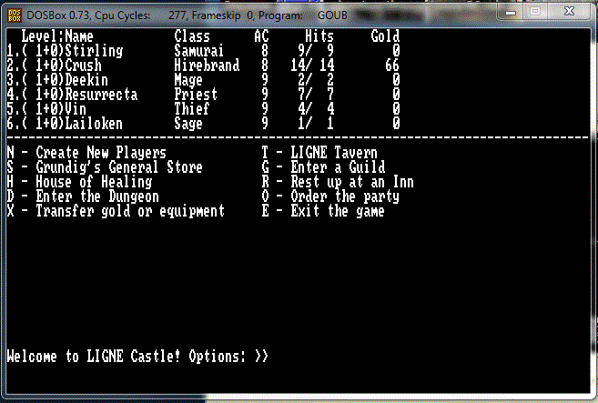 - Once you create your character, you have to choose a guild to join for your "apprenticeship." There are 19 guilds, but restricted based on class and attributes, I guess. Once you join, three things can happen: 1) you graduate, and your age and attributes advance accordingly; 2) you fail to graduate and become a peasant (albeit playable); 3) you die during training. The latter is apparently common with some of the shorter-lived races. If you fail to graduate, you can re-enter, but at a cost of time. I created a human samurai who flunked out the first time at the age of 23. I re-enrolled him, and he graduated the second time--but when he was 51. Ouch. Anyway, this guild thing is very creative and unique to this CRPG.