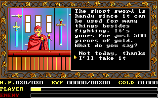 I'm glad you're getting some enjoyment out of Ys. I think it has good gameplay flow, which is an underrated aspect of a good CRPG experience. Versions for other platforms are better than the DOS one, sadly.