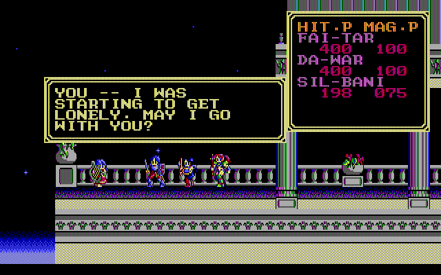 DeleteThe concept of what "looks best" is subjective, though people certainly assume some degree of objectivity to it as well (more colors > fewer colors, higher resolution > lower resolution, that sort of thing, generally) ... but those Sorcerian screenshots are painful to look at. Yes, in theory, they are higher-resolution and higher-color than basically everything else he has played, but it almost looks like there are garbage pixels spewed randomly on every part of the screen due to the way ... well, I do not know enough technical details to know WHAT that is all about, but it looks like someone scratched the screen with sandpaper until it looked awful. Or like it is out-of-focus all the time. Or both.