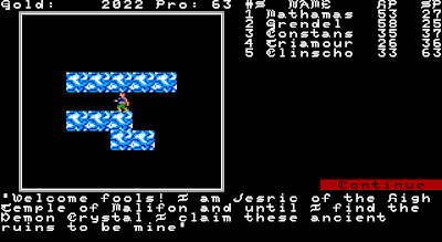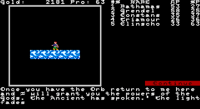 Even though I didn't feel quite ready, my crew headed back to the Vault of the White Knights to obtain this Orb. The Vault was the largest and most interesting dungeon in the game so far. A spirit guarding the Orb of Evertime told me that I needed to pass a number of tests to prove myself worthy of it.