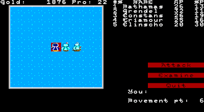 8. I'm always bemused that early game designers were in many ways so talented but at the same time so aesthetically incompetent. It's not that the graphics were bad (they are); but even I, with partial color-blindness and no art skills, would never have used the colors combinations they used when I was making QB4.5 RPGs back in the early 90s. And the large graphics seem to detract more than they add.