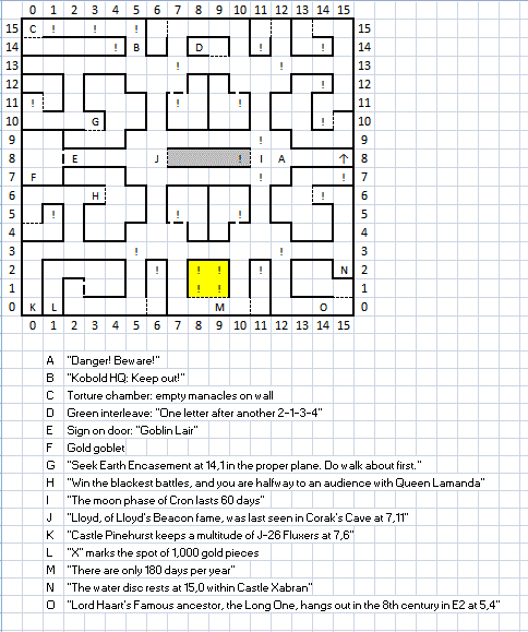 - "Lord Haart's famous ancestor, the Long One, hangs out in the 8th century in E2 at 5,4." Also no idea, but I'm guessing by the time I have to time-travel, I'll know why.
