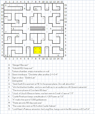 I won't reprint all the dungeon messages as I play the game, but this gives a good sense of the variety. One important thing, though, for those of you thinking about playing: the messages only show up when you're facing the correct wall. There were at least two on the south side of east-west corridors--walls that you would otherwise have no reason to turn and look at. Thus, in exploring the dungeons, I have to make sure I face all four directions on each square to make sure I don't miss a clue.