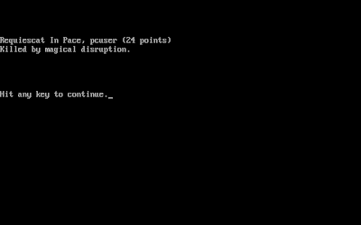 Still, I want to fully explore this one. I realize that the later versions of NetHack transcend what is normally thought of as the limitations of a "roguelike," but this is the first game that has really made me feel it's possible to create a full and interesting world without anything we'd think of as "graphics."