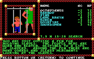 I had no idea where to find the "heir to House Bivant," so I decided to head off to the Zhentil Keep outpost to the west, but on the way I ran into a "buccaneer base." Inside, my blood boiled to find slave pens full of men, women, and children.