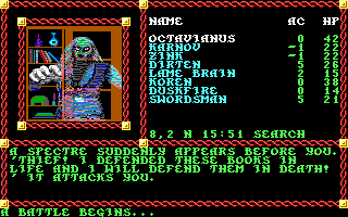 ReplyDeleteMendor's Library and a bug in PoR gave me one of my most fondly recalled experiences in CRPGs: when my party fought the specter, my highest-level character was my 3rd level cleric, so the rest of the party hung way back while he went into melee with the undead monster. Of course, the cleric died after getting hit twice, the specter mercilessly robbing him of 4 of his 3 levels. The rest of the party felled the spirit before it killed anyone else and hauled the fallen cleric back to town.