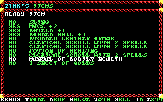 On the C64 you could fill your inventory with darts or arrows by splitting the stack if you then split the gold foil the top item in your inventory turned into some strange item I forget what it is called but it sold for a crazy amount of gold. the same trick worked with any item that could be stacked. oil holy water and darts all turned into an OP missile weapon that fully encumbered whoever carried it. Made killing the trolls in the slums super easy. you could also give these hidden items to an npc that you added to your party then attack said npc after any battle the npc would turn on you if you killed them you got a ton of xp for the hidden items.The most legit way to get more than one of any item you find in the game is to play through the game multiple times with the same party.