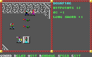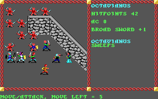 Pool of Radiance errs more towards Wizard's Crown tactical complexity, while removing many of its annoyances. Chief among them is having to be concerned about which way the character is facing. In Wizard's Crown, you had to be facing your enemy's specific position to attack him, and turning was an annoying process that took a weird key combination. In Pool of Radiance, the facing direction does matter, but the game just automatically adjusts it when you choose to target a particular enemy.