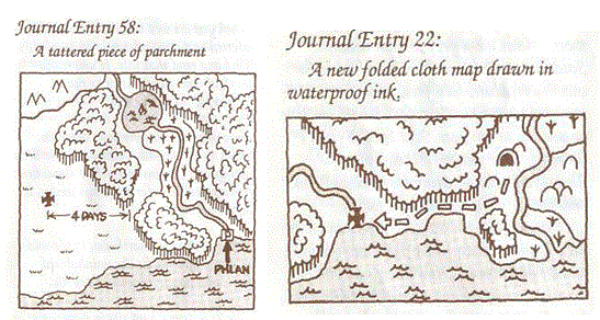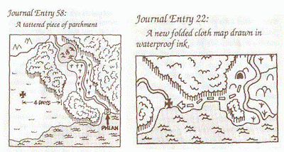 I had some fun paging through the Adventurer's Journal and looking at the entries that I didn't find. Most of them were deliberate misdirection aimed at players who cheated and read ahead. There was both a fake proclamation and tavern tale having to do with a woman kidnapped by ogres to the east of Phlan; they don't exist. There are three or four fake X-marks-the-spot maps that start at real reference points. One can picture puzzled players wandering around the area trying to find the hidden treasure that isn't there. There was a journal entry suggesting that Mace the cleric betrays Tyranthraxus, which never happens.