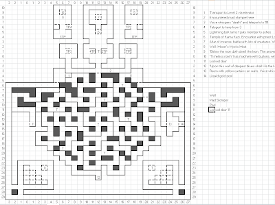The levels are not only large but irregular. Level 3 is at least somewhat square, even if a lot of the space in the upper right and left corners isn't used. Level 4, on the other hand, proved to be extremely long and narrow, although I still haven't explored one stairway there from Level 5 (which I've also partly mapped), so for all I know the part I've mapped is only a small part of the level: