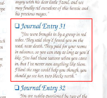 Like its predecessor, this game comes with a paper "Adventurer's Journal" to which you are referred throughout the gameplay, starting from the moment you wake up in the inn in Tilverton. This process minimizes the amount of text on screen and allows for images that the developers didn't want to have to program into the game.