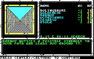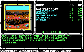 I did get the map entry, but that wasn't any guarantee that there wasn't some interesting or important encounter in one of the off-map areas. I felt I had to explore everything. If I'd known what I know now, of course, just would have made a beeline for the pit.