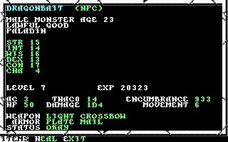 One reason I would go to Dracandos first is so one of my female characters could join the Swanmays. This impresses the Commander at Yulash. Also I would target Zhentil clerics and mages with missiles or ice storm to block casting. Missle carrying infantry is a necessity in the Gold Box from this time on. I think Thieves can use short bow in COAB.