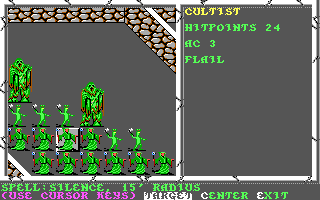 - Should my fighters start attacking the cultists in the front row, and reduce the number of cultists who can cast spells in the first round? Or should they delay until my priests have held a number of them, so they can take them down in one blow?