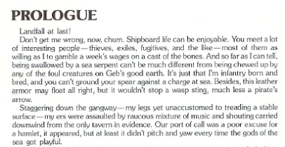 I have nothing important to add, only that I love reading about the game, and that few games ever created more verisimilitude with so little tech to work with. I loved the movement system because it constantly demanded being aware of your fatigue in case an enemy appeared; I love the ridiculous inn-keeper at the beginning of the game; I still am enchanted by the manual's overly ambitious promises of recreating a tabletop RPG.