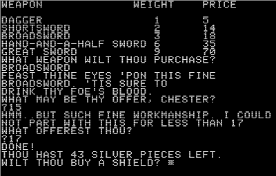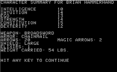 | Character creation and equipment purchases in Temple of Apshai. |
