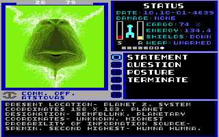 DeleteAre you going out of your way to try the different communication postures with the different races? You might be surprised at the results. In fact, my memory is that Starflight 2 is actually the game that makes more of a point of making each posture useful with someone or other.
