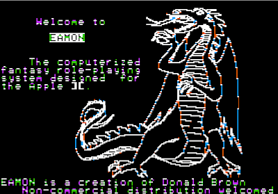 Anyway, I think it was Ron that brought me the outline sketch for that dragon. I thought he had done it. He might have. Or, he might have "found" it on the net. Both Eamon and Odyssey came out that same year, so I have no idea which of us got the art first. The difference in the tail, wing, and color, though, looks like me. I am a total hack as an artist. But, cut and paste, alter slightly, and such - that I can do. And, it was about then that I wrote a flood-fill feature for Higher Graphics and that was clearly used to colorize that sketch.