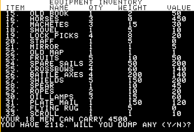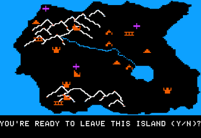 DeleteI appreciate the correction on the randomization of the island locations; I made a note in the entry above. As for your solution to "error handling," I certainly prefer it to a host of other games from this era that offer NO recourse for crashes!