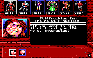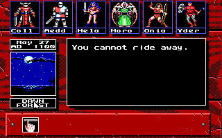 The Cloak of Courage is a very valuable item. I thought it would be useful in the Arena, but once again I noticed that the designers really went out of their way to annoy their players. When I didn't equip the Cloak my guy would face something that would paralyze him in fear, but once he equipped it he faced something not scary like a Hobgoblin instead. It was easy to test by using the save states version of DosBox.
