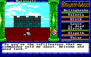 The game made a point that "there is no opportunity to desert," but there was, and it involved getting past the guards that I defeated in the video. I thought about trying to escape at that point, but I wondered what I'd find in the city of Byzanople, so I decided to check it out. Namtar's general, Buck Ironhead, was happy to send me forth into the city, thinking I was infiltrating it for him.