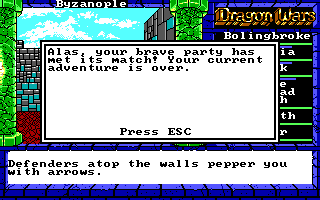 | This happens if you wander around outside Byzanople's walls instead of going under them. |