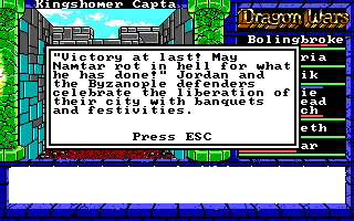 I was probably here too soon. There were some tough battles, including one with a hydra that took me several re-loads to win. Fortunately, the game didn't force me to fight for Namtar. I was able to get into the dungeons under the city, where I was captured by Princess Myrolla and brought to her brother, Prince Jordan.