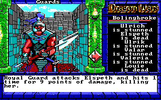 - The 5 royal guards got into melee range before the 15 guards were completely gone, but by then they were at a manageable number, and thanks to my buffing spells, they were doing small amounts of damage. Elspeth kept flinging mass damage spells, though she had to recharge three times during the battle with dragon stones.