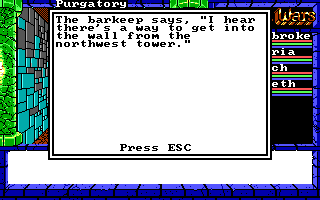 Purgatory is a large city that took me several hours to explore. There seem to be five possible avenues for escape: