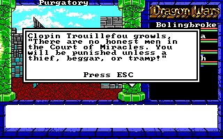 DeleteIn case it isn't obvious, I dearly enjoyed playing Dragon Wars, and I think it's one of the great, underappreciated classics of CRPGs.