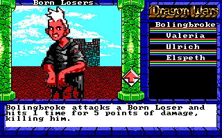 Dragon Wars is a much more managable game that you can finish in a couple of days, thanks to the much more senisble random encounter frequency. But I missed the randomization of the BT games. I think all the loot is handplaced in DW and you'll often face the same monster groups.
