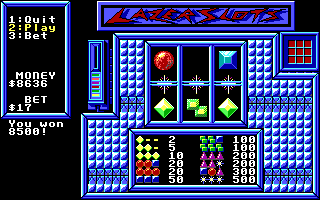 DeleteGambling in this game is a huge cheat. When I played it 'back in the day' I discovered the games random generator seed was included in the save game state. So I would save the game at the casino, start a game of Keno, record the winning numbers, restore the game, play Keno again and then select the winning numbers for maximum winnings. It's funny... after all these years I could not remember the title of the game, but I remembered how to 'earn' cash in it.