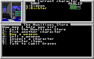 | Buying weapons in the munitions store. |