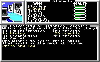 As a kid, I loved Mars Saga for its atmosphere. I could almost imagine myself walking through this futuristic mining colony solving mysteries. In retrospect, that was the best part of the game for me. Imagine, too, my disappointment when I first reached Proscenium only to find there was no one to talk to or compelling plot device to continue the story. Imagine my shock when I finally defeated the 4 blobs at the end only to find that was the end of the game. I think this was my first case of truly loving a game all the way up to the end only to find the story had run out way earlier. As an adult, I can see that Westwood probably ran out of time or ideas and had to get an unfinished product out to market. Some of the skills included with Mars Saga (and removed in Mines of Titan) didn't even function or do anything in the game.