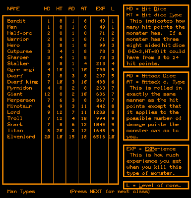DeleteIt's really fascinating to look at these super early crpgs because they show that the origin of the genre's adaptation to computers was borne on one hand, of a desire of simulation, not storytelling and on the other hand had a vital social aspect (trying to topple someone else's score, multiplayer).