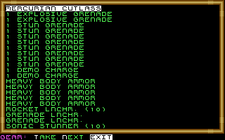 In the armory, entered through the only successful use of a skill in the game so far, I found a mother lode of grenades and other weapons: