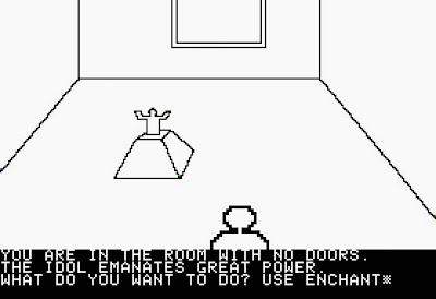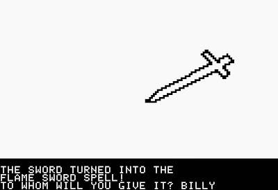 The maze isn't randomized but the encounters along its path are, and this is where the spells are necessary. You might come across a group of guards that respond to "Ball of Fire" or "Sleep," a corridor with flames shooting out of an opening that can be passed with "Jump" or "Extinguish," or a pit that you can exit with "Rope Trick" or "Levitation."