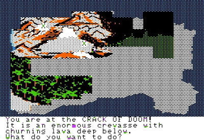 That crack of doom reminds me of what I love about text adventures. I don't remember which, but there was one where you walk into a room with a crack in the wall. I was rather lost at that point and tried everything, i.e. unsuspectingly typed "take crack", and there was a hilarious reply to that. The things you could discover in these games... :-)