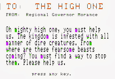 In this game, we're given a name for the external threat that caused the High One to seal himself and his people from the outside world: Atlantis. The Atlanteans developed science as an alternative to magic, grew powerful with their inventions, and began to enslave the rest of the world, hoping to eventually exterminate magic to preserve their dominance. As the new High One, the character from Odyssey must now contend with this threat. The game makes no secret from the outset that the successful player will be the one to cause Atlantis to sink into the ocean. His mission is to cause a volcano to erupt by casting his magic orb in . . . keep it together, kids . . . the Crack of Doom.