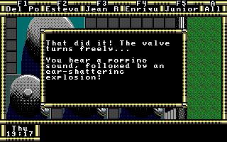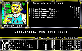 You first have to get past the staggeringly awful backstory, in which a nuclear war somehow causes Florida to break free of the continent south of Daytona Beach and go drifting off on its own, as if the land we live on is just floating on top of the ocean or something. To top it off, the denizens have erected a wall ("Mickey's Wall") around the entire island to keep out mutants from the mainland, a device which limits the size of the game world enough on its own and renders the stupid "Florida is now an island" element superfluous. The outdoor game map takes up a miniscule area of about 20 x 20 squares, containing Miami, the player's home, the Everglades, and...sigh...we have to confront this eventually...the Killer Clown Kollege. If they were going to spell "college" with a "k," I have no idea why they didn't do the same for "clown."