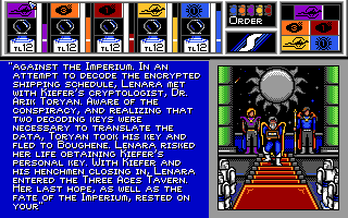 The project lead for MegaTraveller was Jane Yeager, and this is the only game on which I can find her credited in such a role; all her other credits include art design and direction. We've seen her work before on DarkSpyre (which, artistically, bears a passing resemblance to MegaTraveller) and will again on Dusk of the Gods (1991), The Summoning (1992), Dungeon Hack (1993), Veil of Darkness (1993), Ravenloft: Strahd's Possession (1994), Menzoberranzan (1994), and Anvil of Dawn (1995), before she leaves the field and turns to computer education and web site development.