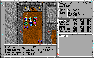 In fact, I suspect I was supposed to explore Dorak later in the game. It seemed a natural next step for me after learning about its existence, and its passwords, in Drakhelm, but its size and difficulty--plus the fact that I didn't know the password to awaken the sleeping god Rhokan--suggests it was intended for a more experienced party. Oh, well. At least I cleared the monsters for a later visit. I hope they don't respawn.