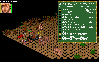 Eventually, spring came and the pass to Thoss opened. Along the way, in line with the intel from the dying mercenary, we found a two-level cave full of traps and pirates, leading to the fabled Daspota treasure. It had several expensive items plus 500 ducats. The game had already been generous with money, but this moment marked the utter end of our financial woes. We stayed in the best inn rooms and had all our meals catered for the rest of the game. Moreover, I was able to liberally purchase potions of magic and healing, which meant I could trust the computer to fight a lot more of my battles, easing some of the frustration I had with the combat system.